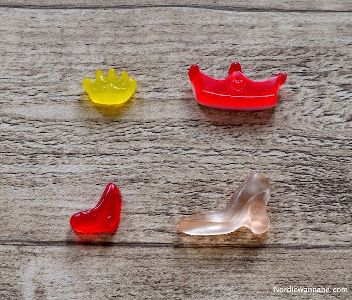 Und, wie bei den Shopping Queen-KATJES (links), gibt es auch hier bei HARIBO (rechts) eine Krone und High Heels: