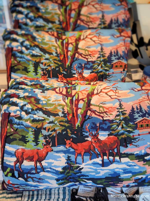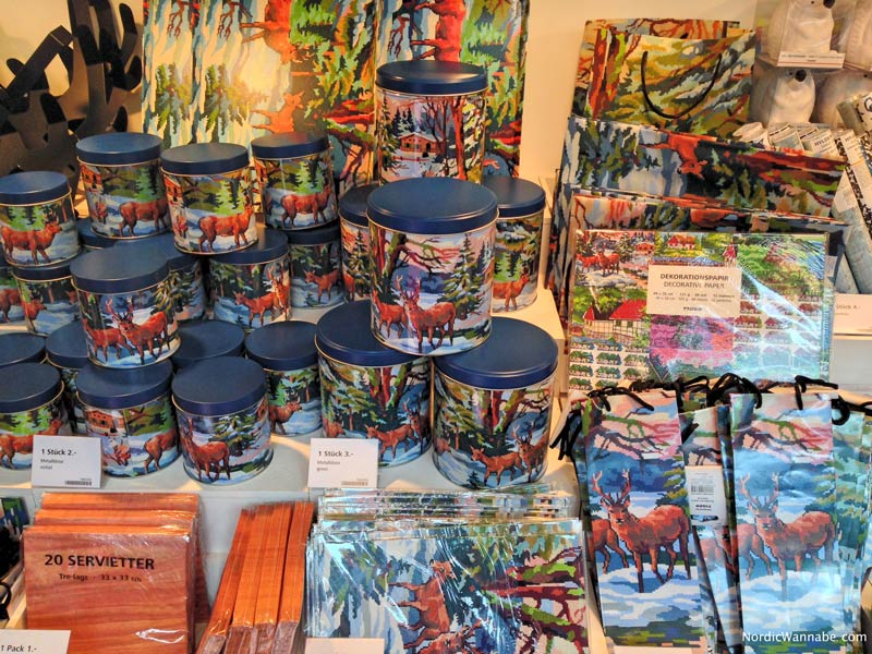 Denn ab sofort gibt es im Tiger Store viele Gegenstände mit winterlichem Wild-Design. Zu sehen sind ein paar Rehe, die vor einer skandinavischen Kulisse im Wald stehen. Das Design vermittelt den Eindruck, dass das Motiv gestickt wurde. Aber es ist ein Druck. Zur Auswahl stehen ganz viele Produkte ab einen Euro: Servietten, Dosen, Geschenkpapier, Tischsets, Pappteller, Kissen, Geschenktüten, Plastiktüten, Regenschirme und es soll auch Topflappen geben.