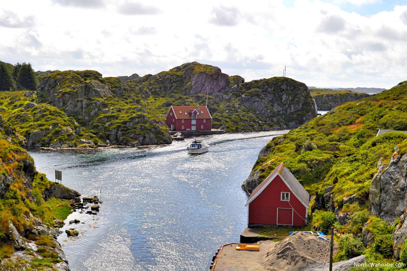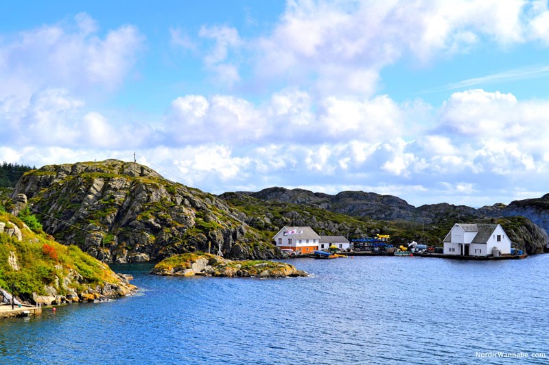 Die Fahrt zur Insel beginnt direkt am Hafen von Haugesund (Hurtigbåtterminal) am Indre Kai und dauert 25 Minuten hin und 25 Minuten zurück. Das Boot fährt öfters am Tag und transportiert nicht nur Passagiere, sondern auch Lebensmittel. (Quasi ein kleines Hutigruten-Schiff 🙂 ) Man kann sich so gemütlich sich den Hafen anschauen mit den Versorgungsschiffen für die Ölplattformen und deren Werfthalle. Dann sieht man mit viel Glück auch ein Wikingerboot, dass in Haugesund anlegt. Wenn man auf Røvær ankommt, fährt man durch schmale Fels-Passagen mit roten Holzhäusern. Typisch-Norwegen und ideal für jeden Skandinavien-Urlaub. 🙂 Auf der Insel kann man dann etwas in Ruhe wandern. Es gibt einen kleinen Strand, einen Kiosk und sogar ein kleines Hotel. Hier hat man seine Ruhe: Wenig Menschen, keine Autos und viel Natur. Wenn ich mir einen Ort zum Leben aussuchen dürfte, würde ich da leben – definitiv! Schaut Euch einfach die Bilder an, die Schönheit lässt sich kaum beschreiben. 🙂
