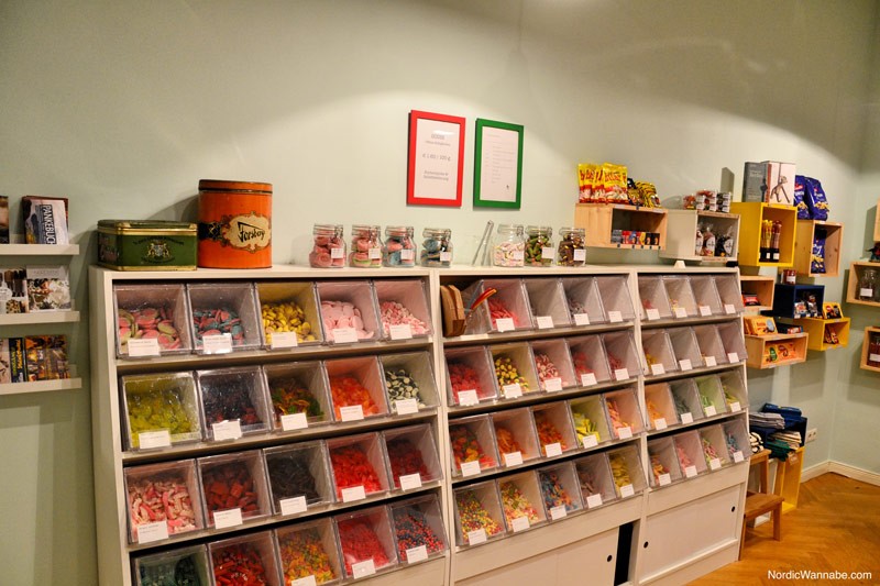 Natürlich gibt es auch die bekannten leckeren Lakritz- und Weingummi-Pastillen aus Schweden und Dänemark. Ein Besuch lohnt sich auf jeden Fall!