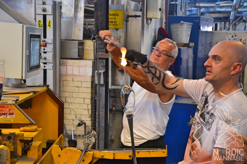 Zurück zum Glas: Zunächst stand ich dem Thema „Glas“ skeptisch gegenüber, denn irgendwie bin ich mehr der Holz-Typ. Auf Glas lege ich keinen großen Wert. Doch als ich dann im Glascenter war und selbst aus einem Glasklumpen eine Schüssel herstellen durfte, war ich sehr beeindruckt und habe gemerkt, was man alles mit dem Material erstellen kann. Lars Andersson ist Eigentümer des Kosta Glascenters. Er hat es sich zur Aufgabe gemacht, den Menschen Glas näher zu bringen und zu zeigen, wie viel Handwerk darin steckt. Er veranstaltet Workshops, Events und man kann auch bei Ihm Glas blasen. Das ist ganz einfach und jeder Schweden-Tourist schafft das. Einfach bei ihm vorab reservieren und los gehts. 🙂