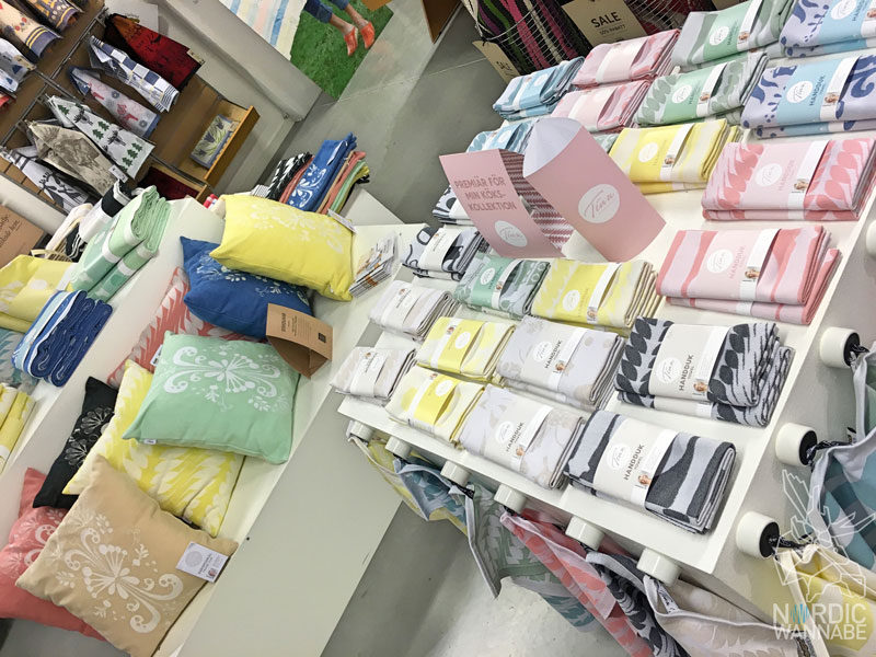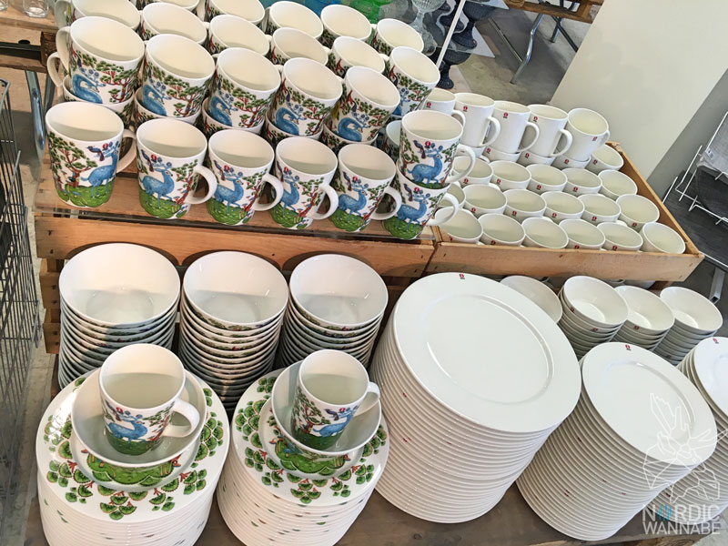 Es gibt Geschirr von Iittala aus Finnland, Geschirr und Besteck von den Moomins, Topfuntersetzer von Areva und die tollen Handtücher von Ekelund. Natürlich gibt es noch viel mehr. Die Preise waren jetzt nicht so tief, dass man dort groß shoppen kann. Aber ein paar Schnapper sind dabei.