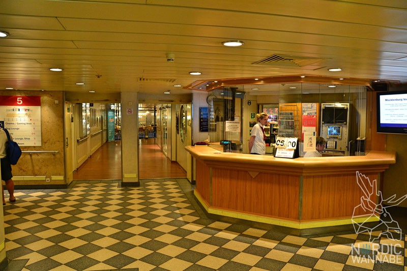 Das Schiff bietet innen einen Service-Counter, der irgendwie an einen Bankschalter erinnert, einen Raum fürs Frühstück, eine Lounge mit Wifi, einem Kinderparadies und einem Supermarkt, der aber erst um 0:30 Uhr öffnete. Einen kleinen Imbiss gibt es auch. Aber aus Respekt zu den LKW-Fahrern, die Ihre Ruhe haben wollen, habe ich dort keine Fotos gemacht.