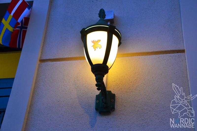 So stelle ich mir ein skandinavisches Restaurant von Außen vor: Ein Elch, skandinavische Flaggen und Buchstaben mit ø und å. 🙂 Für einige ist dieses vielleicht zu viel Klischee. Aber ist es nicht genau das, was wir suchen? In Berlin hatte ich ja mal das norwegische Restaurant „Munch’s Hus“ besucht, was eher nüchtern eingerichtet war. Doch im Smørgås sieht es ganz anders aus. Und Drinnen geht es so weiter. Dort gibt es rote Holzwände, die an kleine Holzhütten in Schweden erinnern.