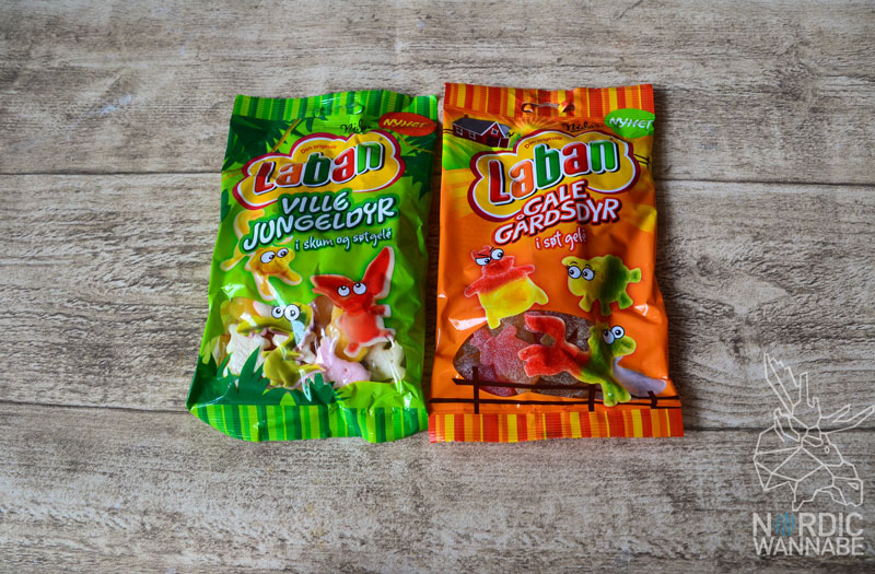Ab in den Dschungel mit Laban Ville Jungeldyr. Die kleinen süßen Dschungeltiere sind auch neu von Nidar in einer 130 Gramm Tüte. Es gibt Elefanten, Krokodile und Affen, die nach Zitrone, Erdbeere und Ananas schmecken. Auf der einen Seite haben sie Fruchtgummi und auf der anderen Seite Schaumzucker. Sie schmecken richtig süß und machen total süchtig. Also mir geht so. Doch auch hier sollte man nicht zu viel essen. 100 Gramm haben 300 Kilokalorien und enthalten Gelatine.