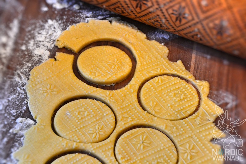Ich schrieb eine Mail an Nordliebe und bekam ein neues Rezept. Dies sollte meine Rettung sein. Das Rezept findet Ihr übrigens hier. Zwar war dieses anfangs auch zu klebrig, aber mit genügend Mehl zusätzlich hat es geklappt. Ich habe tatsächlich Kekse mit Mustern gebacken. Der Teig wird auf einer bemehlten Arbeitsfläche ausgerollt und dann mit einem Glas oder Ausstechformen ausgestochen.