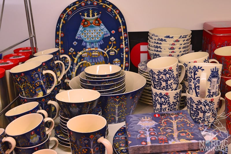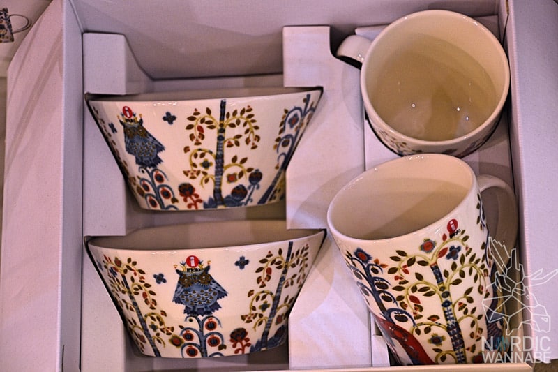 Die Becher und Teller sind oft mit sehr verzierten Mustern versehen. Die Namen der Serien sind: Taika, Origo, Tanssi und Sarjaton. Das Portfolio ist wirklich sehr umfangreich: vom Teelichthalter bis hin zum Geschirr, über die Vasen bis zu Gläsern, Bestecken, Töpfen, Lampen und Kerzenständern.