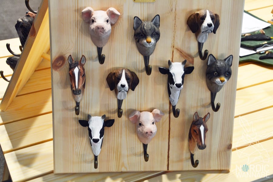 Die Stifte heißen DecoPen, sind handgeschnitzt und haben eine Kugelschreibermine, die man austauschen kann. Die Haken (DecoHook) sind auch handgeschnitzt und gibt es u.a. mit Schweine-, Katzen-, Hunde-, Pferde-, Kuh- und Elchkopf.