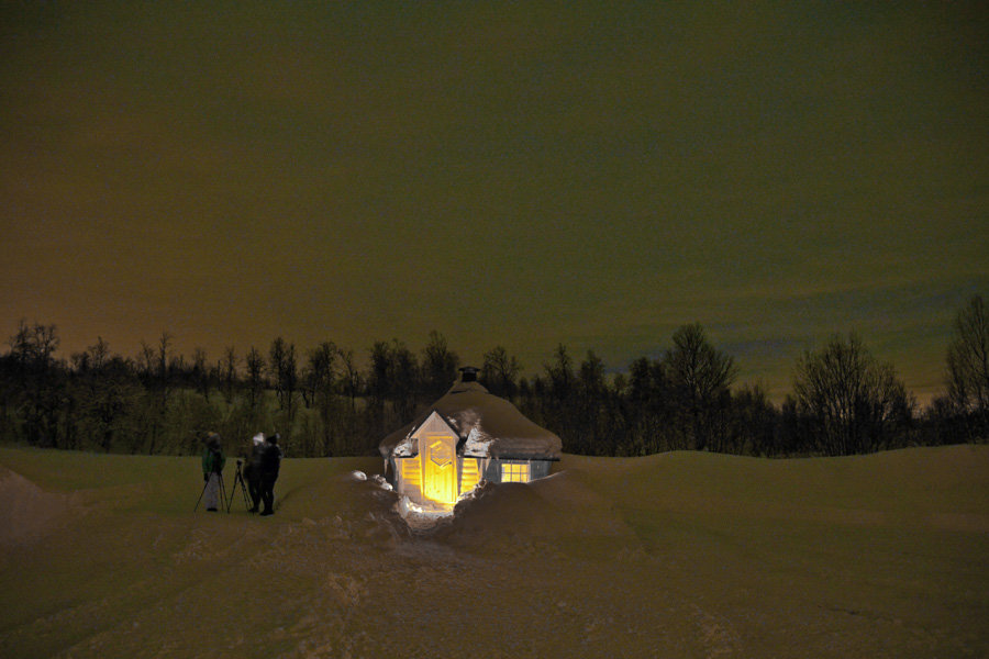 Ich weiß nicht genau, wo wir waren, aber wir fuhren in Richtung Narvik. Nach 1,5 Stunden kamen wir endlich an der Base-Station an. Hier passierte auch wieder etwas merkwürdiges. Jemand fuhr mit dem Wagen den Weg zur Station hoch und hatte hinten die Heißgetränke im Kofferraum. Der war aber offen und der Behälter fiel in den Schnee. Naja. Ohne Worte. Die Station war mitten im Nichts. Hier gab es nur Toiletten und zwei Holzhütten. Aber das ist perfekt zum Fotografieren, weil es so dunkel ist. Der Himmel war bewölkt und meine Hoffnung Nordlichter zu sehen, sank auf Null. Wir stellen alle unsere Stative auf, denn ohne kann man keine Nordlichter fotografieren. Ich hatte auch in meiner Naivität gedacht, dass ich mit dem iPhone Fotos machen kann, aber das kann man vergessen. Hehe. Wir gingen zum Aufwärmen ins Haus. Dort gab es Rentiersuppe. Wir mussten aber dafür irgendeinen Schein haben zum abgeben, aber den hatten wir nicht und man konnte uns auch nicht erklären, ob wir das mit bezahlt hatten oder nicht. Plötzlich rief der Guide: „Rauskommen, da sind Nordlichter!“