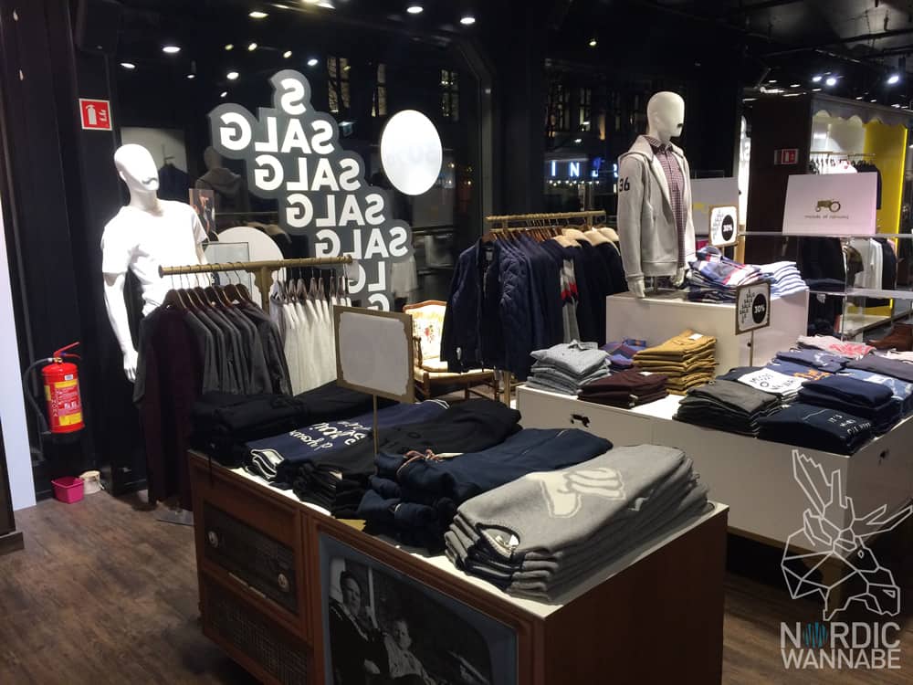 Aus Norwegen kommt die Mode im Super Duper Store von Moods of Norway. Schon oft war dieses Label Thema auf meinem Blog. Ich habe dort früher immer meine Taschen gekauft. Mittlerweile finde ich aber immer weniger dort. Die Sachen sind sehr hochpreisig, was für Norwegen normal ist, aber irgendwie fehlt mir der Bezug zu Norwegen. Früher gab es immer öfters auch Shirts, die direkt mit Norwegen in Verbindung standen. Irgendwie scheint die Luft raus zu sein. Die aktuelle Kollektion ist doch sehr beliebig. Schade, obwohl die Sachen in Norwegen designt werden. Aber Ihr müsst Euch unbedingt die Stores ansehen, denn die sind sehr cool gestaltet. Die Umkleiden sehen immer aus wie eine alte, traditionelle, norwegische Hütte.