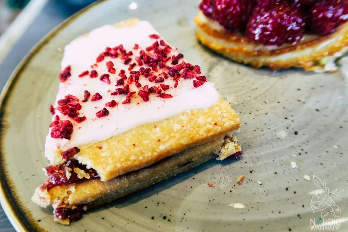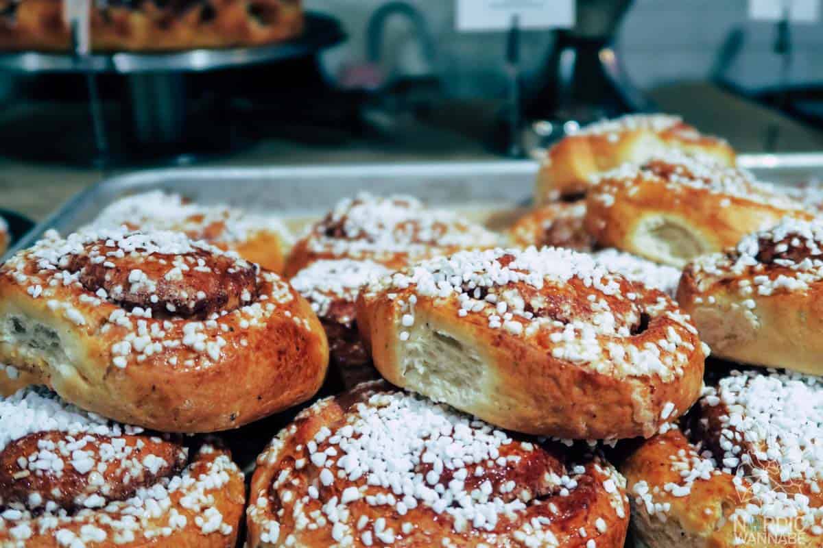 Dieses kleine und feine Café ist etwas außerhalb des Zentrums. Man kommt aber sehr leicht mit den öffentlichen Verkehrsmitteln dorthin. Es ist sehr gemütlich eingerichtet mit hellen Farben, viel Holz und schönen Fliesen am Boden. Auch hier gibt es, wie bei allen anderen Cafés Zimtschnecken, Sandwichses und andere Snacks. Alles ist sehr frisch zubereitet und gesund. Das Lokal geht über zwei Etagen. Im ersten Stock befindet sich der Tresen, wo man seine Bestellung aufgeben kann und es gibt eine kleine Ecke mit Skandi-Produkten, die man kaufen kann. Neben Schmuck findet man auch Deko-Artikel, wie Kissen, Felle und Kerzen. Sehr hyggelig. Eine schmale Treppe führt nach oben, wo es auch noch Platz zum Essen und Trinken gibt. Ich hatte eine Zimtschnecke und einen leckeren kalten Kakao, den sie extra für mich angerührt hatten. (Denn warme Getränke sind nicht so meins).