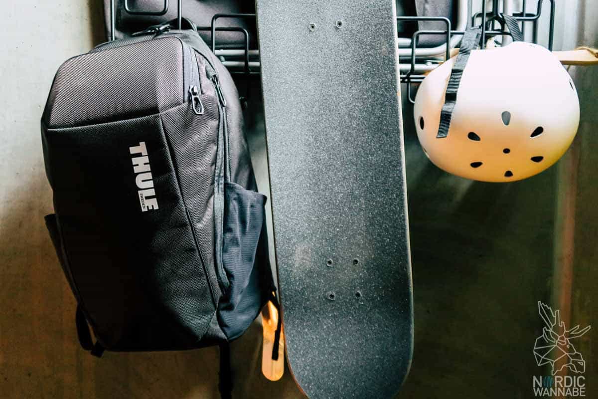 Bei meinen Skandi-Reisen ist es so extrem wichtig, dass ich das richtige Gepäck habe. Der Rucksack sollte bequem sein, die Sachen sollten sicher verstaut sein und dann sollte er auch noch gut aussehen. All das bietet der THULE Rucksack. Ich bin sehr wählerisch bei Rucksäcken und bin froh, das sich ihn gefunden habe. In den nächsten Abschnitten werde ich noch näher darauf eingehen. Auf jeden Fall habe ich ihn schon mit in London, Stockholm, Helsinki, Oslo, Kopenhagen und Malmö dabei gehabt. Der THULE Rucksack passt auch perfekt als Handgepäck unter dem Vordersitz bei Finnair, Norwegian, Lufthansa, British Airways und Co. Das sollte also kein Problem sein. Ich hatte oft einen kleinen Koffer dabei und den Rucksack zusätzlich. Und unabhängig davon, wie der Rucksack ist, er überzeugt schon allein mit seiner Gepäckschlaufe sodass man ihn oben am Trolley befestigen kann. Das ist eine Komfortsteigerung von 150 Prozent!