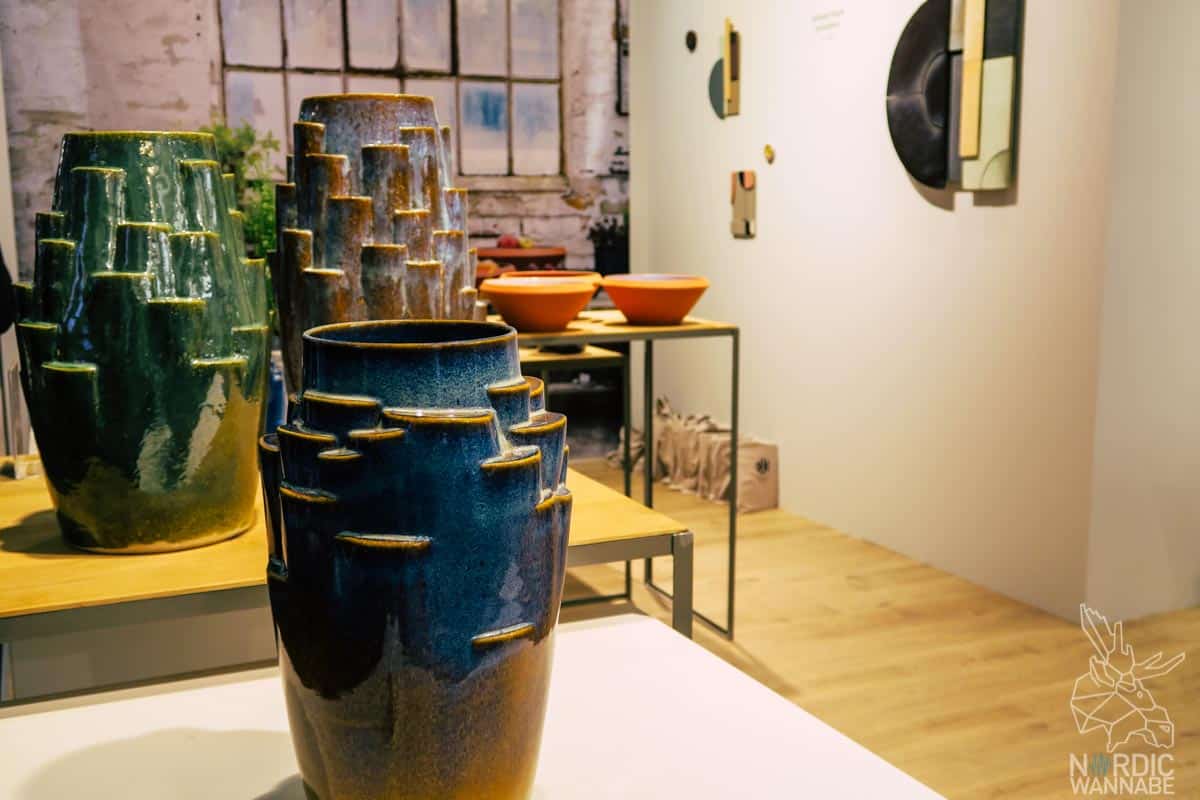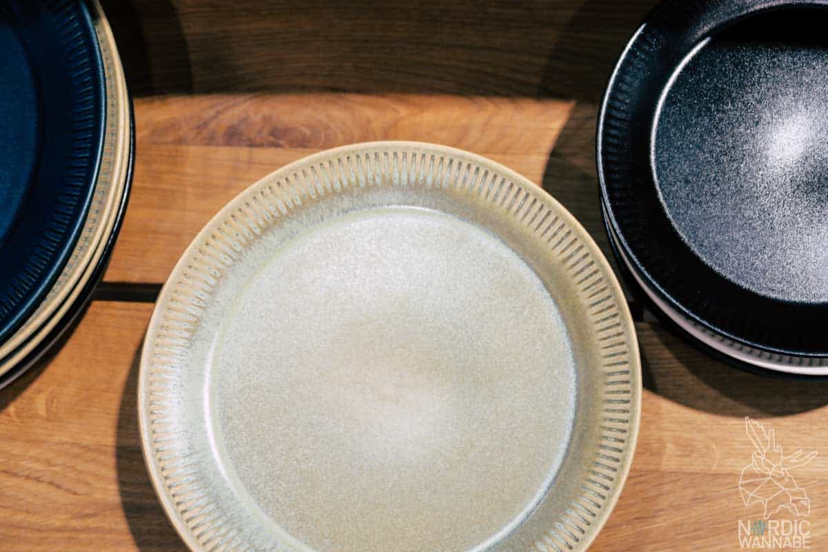 Völlig neu für mich war das Steinzeug-Service von Knabstrup Keramik aus Dänemark. Das Service gibt es in vier Farben. Olivgrün ist das Original von Johannes Hansen, was 1966 bis 1972 angefertigt wurde, und neu sind die Farben Weiß, Schwarz und Blau. Die Glasur ist seidenmatt. Der Keramiker hatte damals den Fokus auf die Formsache gesetzt. Das Service ist schlicht und die Kanten sind geriffelt. Ich mag sehr das blaue Service, da Blau eh meine Lieblingsfarbe ist. Knabstrup Keramik gibt es seit 1897 und erfindet sich ständig wieder neu. Neben dem Service gibt es auch Vasen, Reliefs, die Vasen Plateau und Leaf, Teig-Schüsseln und Töpfe. Und das Beste kommt zum Schluss, nämlich die Preise. Die Teller und Becher gibt es jeweils ab 14 Euro.