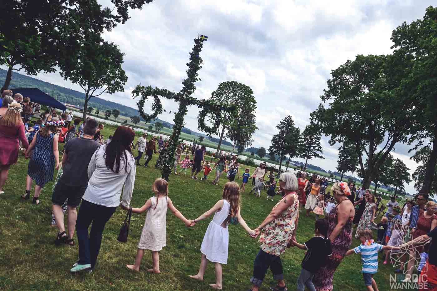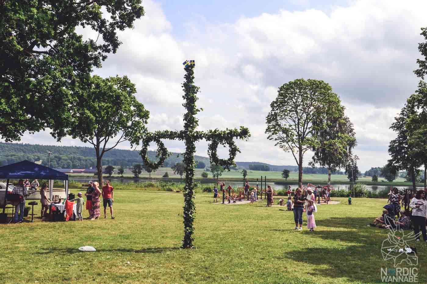 2016 durfte ich Mittsommer in Schweden feiern. So typisch mit lustigen Liedern, Mittsommerbaum (oder Maibaum) und einem Mittsommer-Buffet. Das offizielle Datum für den Mittsommertag in Schweden (auch in Norwegen und Dänemark) und ist der 23. Juni. Doch in Schweden wird Mittsommer immer an dem Freitag gefeiert, der in der Nähe des 23. Juni ist. Doch warum wird Mittsommer gefeiert? Es ist der längste Tag der Jahres, wo die Sonne kaum untergeht – deshalb oft auch Sommersonnenwenden genannt. Schon die Wikinger haben an diesem Tag Feuer gegen böse Geister angezündet und die Fruchtbarkeit gefeiert, damit sie reichlich ernten konnten. – In Schweden werden Blumenkränze gebunden und von Jedem getragen, egal ob Mann, Frau, alt oder jung. Während man um den Mittsommerbaum tanzt, werden viele Lieder (zum Beispiel: Små grodorna, die kleinen Frösche) gesungen. Die Erwachsenen singen Lieder, wie Helan går, beim Trinken (nubbar).