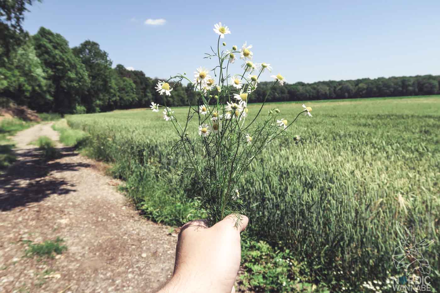 Zu Mittsommer gibt es eine traditionellen Brauch. Sieben gepflückte Wildblumen werden unter das Kopfkissen gelegt und dann träumt man von der Person, die man später heiraten wird. Klingt verlockend, oder? Aber wo bekommt Ihr Wildblumen her? Wildblumen gibt es mittlerweile auf dem Wochenmarkt oder es gibt auch schon fertige Wildblumensträuße zu kaufen beim Floristen. Das ist etwas geschummelt, aber es sind ja auch besondere Zeiten. Alternativ könnt Ihr Euch einfach mal aufs Fahrrad schwingen und etwas raus aus der Stadt fahren. Am Rand der meisten Getreidefelder wachsen oft Wildblumen. Viel Spaß beim Pflücken und Träumen von der großen Liebe.