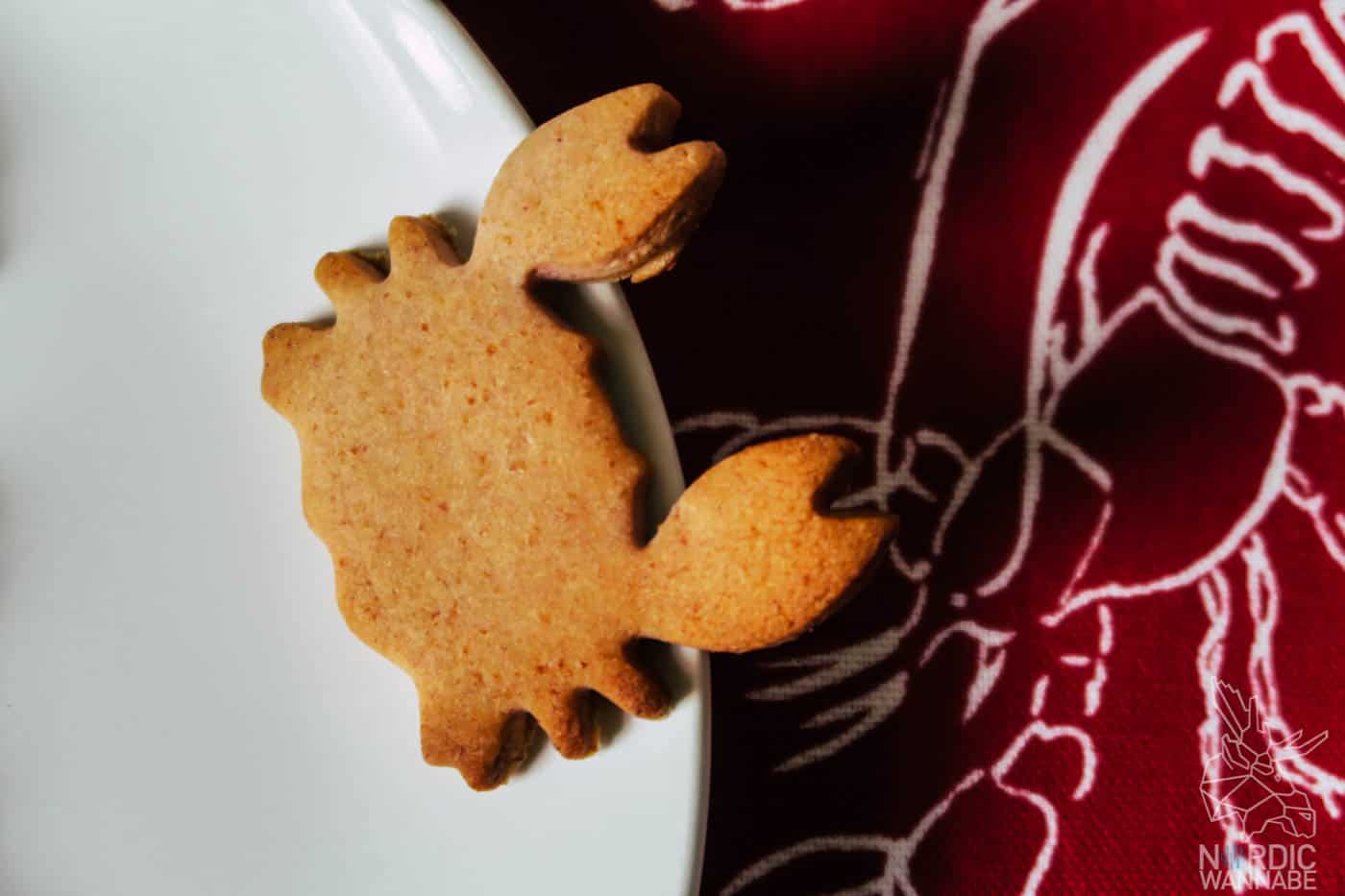 Hej liebe Nørdies, im August wird traditionell das Krebsfest in Schweden (kräftskiva) gefeiert, bevor der Herbst kommt. Ich selbst habe 2017 bei einem Krebsfest im IKEA Einrichtungshaus in Osnabrück mitgemacht. Es wurde viel gefeiert, gesungen und gegessen. Irgendwie habe ich dann aber schnell festgestellt, dass Krebsfleisch nicht so mein Geschmack ist, ich nicht gerne an den Tieren herumfummeln mag und ich es auch nicht gut finde, dass Krebse lebendig ins kochende Wasser geworfen werden. Trotzdem wollte ich aber das Krebsfest feiern und einfach den Sommer genießen. Also habe ich in diesem Jahr meine Krebse einfach gebacken. Im Internet fand ich eine Ausstechform als Krebs*. Nun musste der Keks nur noch etwas rötlich gefärbt werden mit Preiselbeer-Sirup – denn schließlich sind Krebse rot/braun. Etwas Zitronenschale half mir dabei die Krebse fruchtig frisch schmecken zu lassen für den Sommer, denn sie sollten ja nicht an Weihnachten erinnern. Viel Spaß beim Nachbacken. Stefan