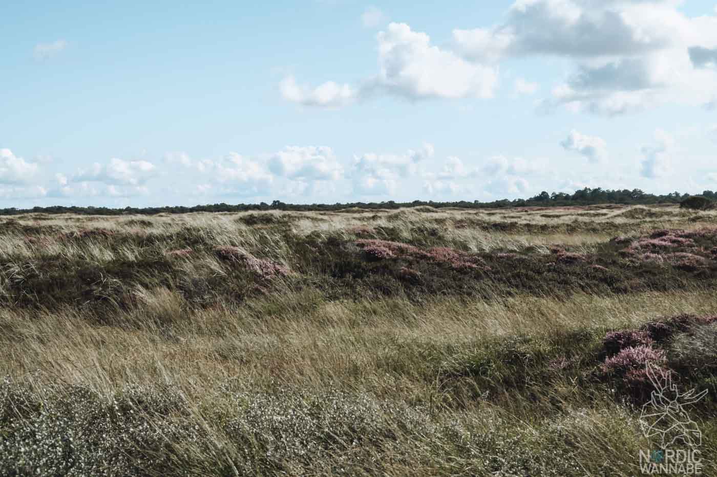 Sieht etwas aus, wie die Lüneburger Heide, oder? Generell war ich sehr überrascht von der Natur in Dänemark. Ich hatte in Erinnerung, dass Dänemark nur flach und kahl wäre. Aber das stimmt nicht. Es gibt natürlich Sandstrände, aber auch sehr kleine Wälder, Heide und grüne Wiesen. Ich mag die Abwechslung und davon seht Ihr noch mehr in den kommenden Blog-Artikeln über meine Zeit in Dänemark.