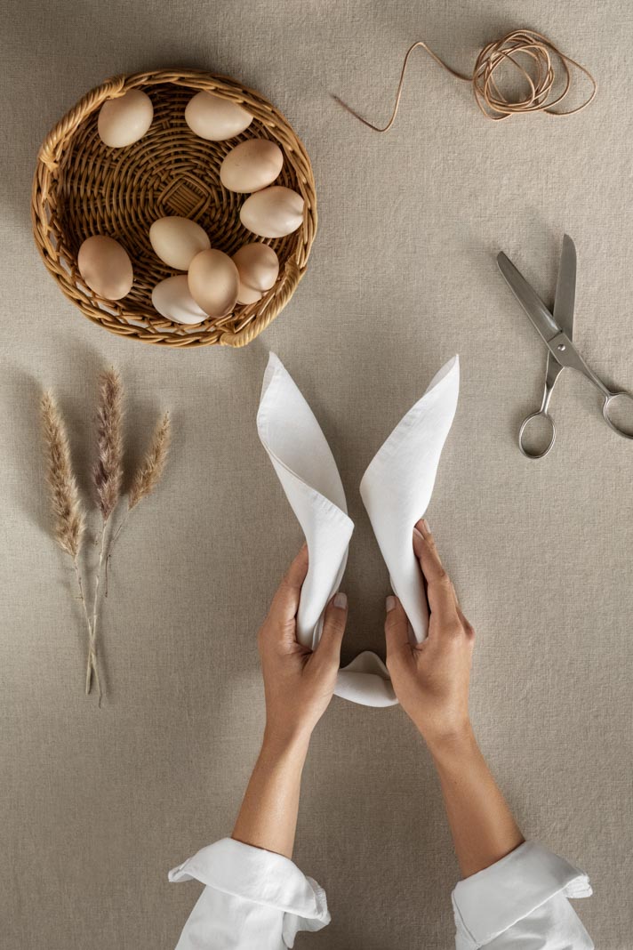 Eier gehören zu Ostern, wie Sterne zu Weihnachten. – Sucht Ihr noch eine tolle Idee, wie Ihr Euren Tisch zu Ostern dekorieren könnt? H&M Home hat da ein kleines Tutorial erstellt. Ihr braucht eine Serviette, hart gekochte Eier, ein dickeres Band und optional könnt Ihr noch Gräser als Deko nutzen. Los geht’s: