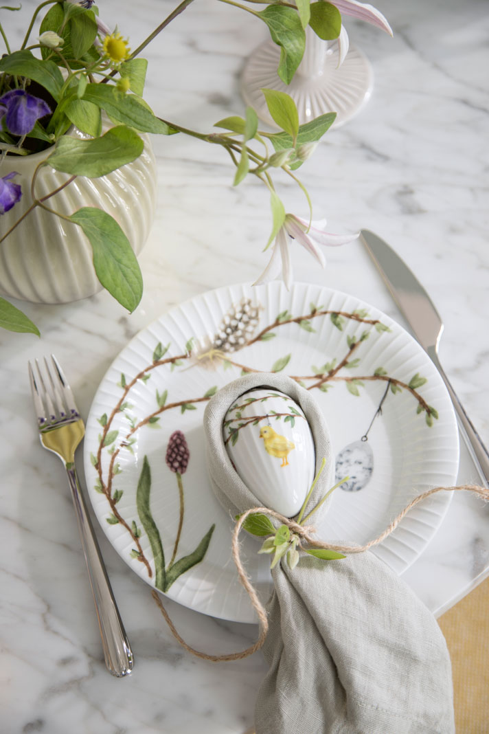 Ostern ist eine Bildergeschichte mit einer Vielzahl an Motiven. Getreu der Tradition finden sich Hase, Ei und Narzisse zusammen mit natürlichen Gestaltungselementen wie Federn und Beeren auf dem Hammershøi Osterservice wieder und werden durch die Dekoration von Rikke Jacobsen eines zarten Frühlingzweigs in ihrer Feinheit betont.