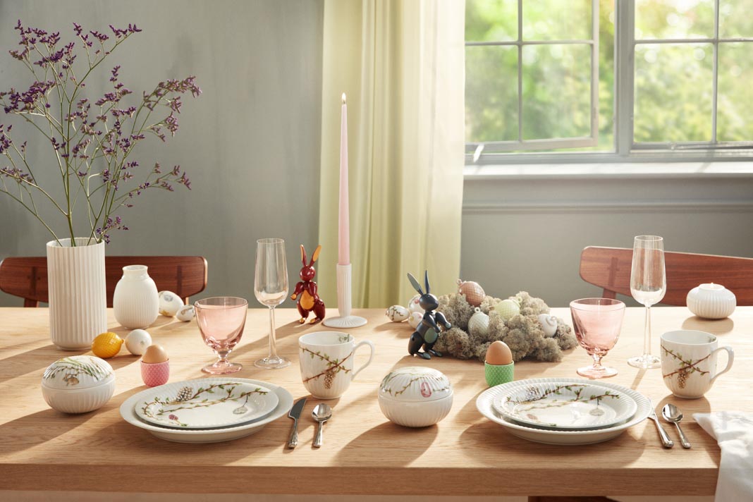 Das stimmungsvolle Hammershøi-Service ist eine Liebeserklärung an die poetische Leichtigkeit und das Frühlingsgefühl, das Ostern umgibt und wirkt tonangebend, wenn es darum geht an Ostern eine skandinavisch inspirierte Atmosphäre in den heimischen vier Wänden zu kreieren. Sowohl für den Osterbrunch als auch zum Mittagessen sowie als schlichtes Kunsthandwerk – mit den gedeckten Dekorationselementen lädt es die Natur und erste Sonnenstrahlen in das Zuhause ein, bis der Sommer beginnt.