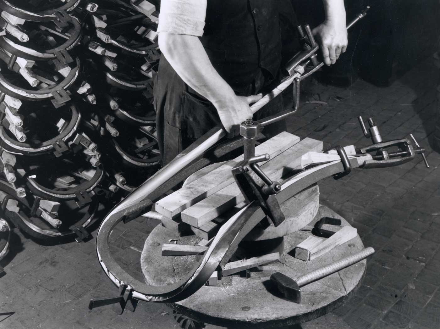 Der Bürostuhl des Gründers entsteht. Das Modell ist schlicht und durchdacht, ein frühes Beispiel für einen Stuhl mit Rückenlehne aus Schichtholz – die Produktionsmethode, die Fritz Hansen im Laufe der Jahre perfektionieren wird. Dies ist das erste und einzige bekannte Beispiel aus dieser Zeit für einen mit laminiertem Furnier gefertigten Stuhl.