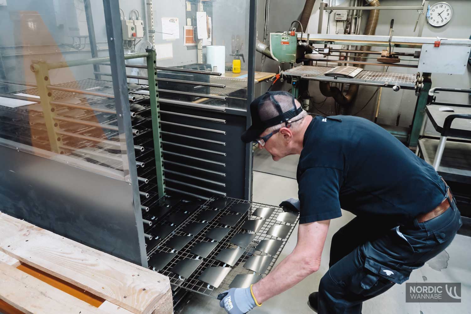Natürlich sind es mehr als nur fünf Schritte bis zur fertigen Leuchte. Was aber schnell klar wird, ist die Tatsache, dass hier nichts am Fließband hergestellt wird. Jede Leuchte wird per Hand vorbereitet, zusammengebaut und überprüft. Und alles ist sehr hochwertig. Selbst das Pulver für die Beschichtung ist von namhaften Herstellern.