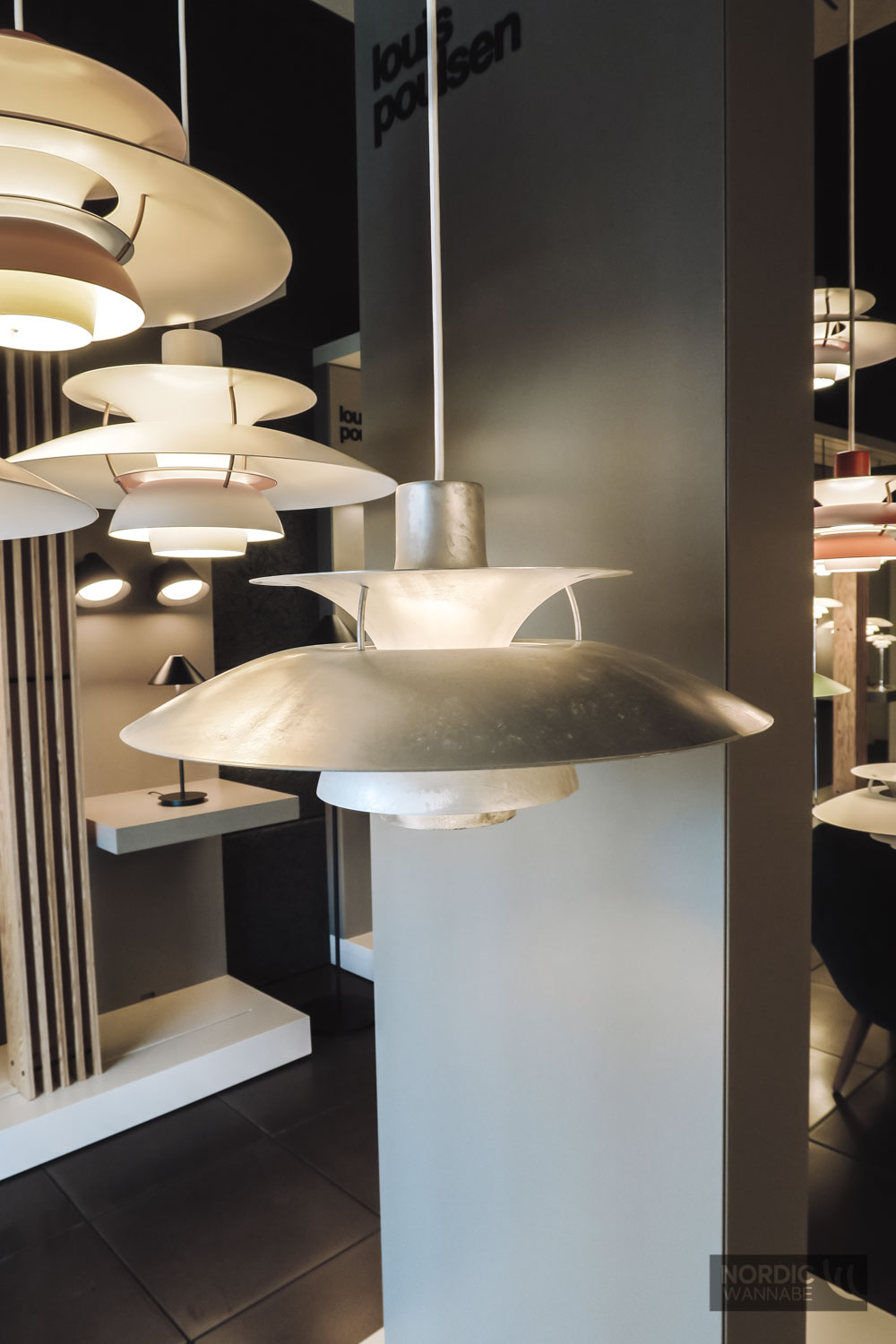 Im Showroom, wo übrigens auch Schulungen stattfinden oder Händer:innen eingeladen werden, hängen/stehen sie alle: von den AJ Leuchten, über die OE Quasi Light bis hin zur neuen PH 5 Retake.