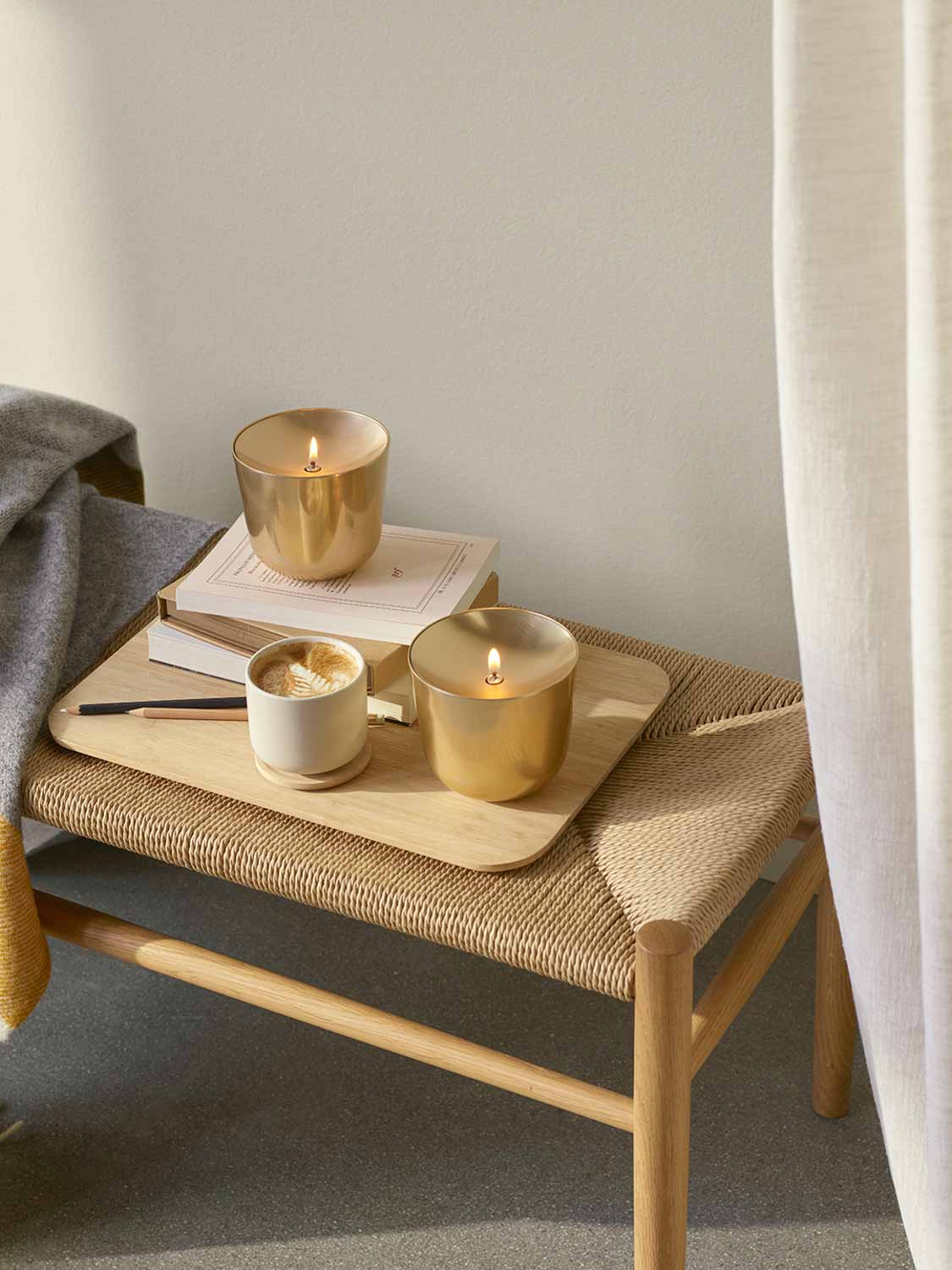 Die Formgebung der Solis Öllampe ist schlicht. Der Designer Søren Refsgaard hat mit Material-, Form- und Farbkontrasten gespielt. Gefertigt ist die Öllampe aus Metall. Diese Materialwahl verweist auf die Design-DNA von Stelton, aber durch die Bearbeitung und Veredelung hat das Material eine sehr organische und ansprechende Form erhalten. Kontraste treffen aufeinander: die glatte Oberfläche, die matten Farben – ein kaltes Material, das durch das Design weich und nahezu taktil wird. Zugleich erhält es einen maskulinen und femininen Ausdruck – je nachdem, ob man sich für die Öllampe in der Farbe „Black“ oder „Rose Gold“ entscheidet.