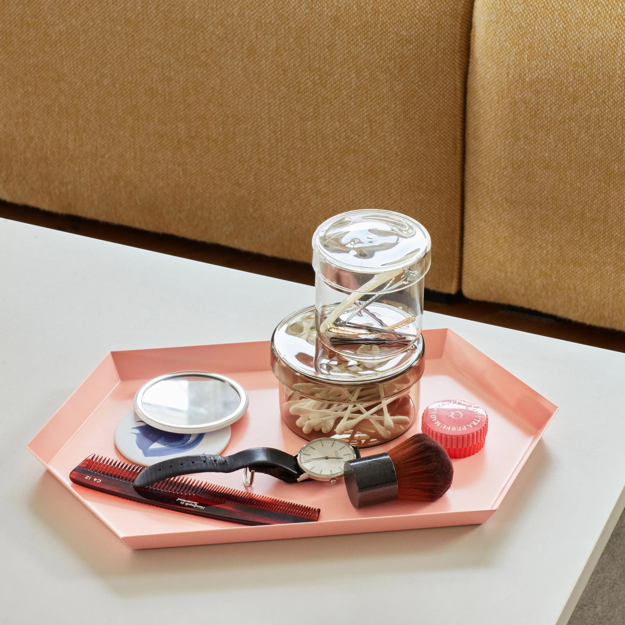 Clara von Zweigbergks Hintergrund als Grafikdesignerin und Origamistin zeigt Die Kaleido-Tablettkollektion von Clara von Zweigbergks für HAY ist seit Jahren beliebt. Die neue Farbvariante Peach passt absolut in den Trend. Die Serie aus geometrisch geformten Stahlschalen kann für Schmuck, Getränke, Snacks und vieles mehr genutzt werden. Die Tabletts können ineinander gelagert werden, um funktionale und fantasievolle Konstellationen zu schaffen und Platz zu sparen.